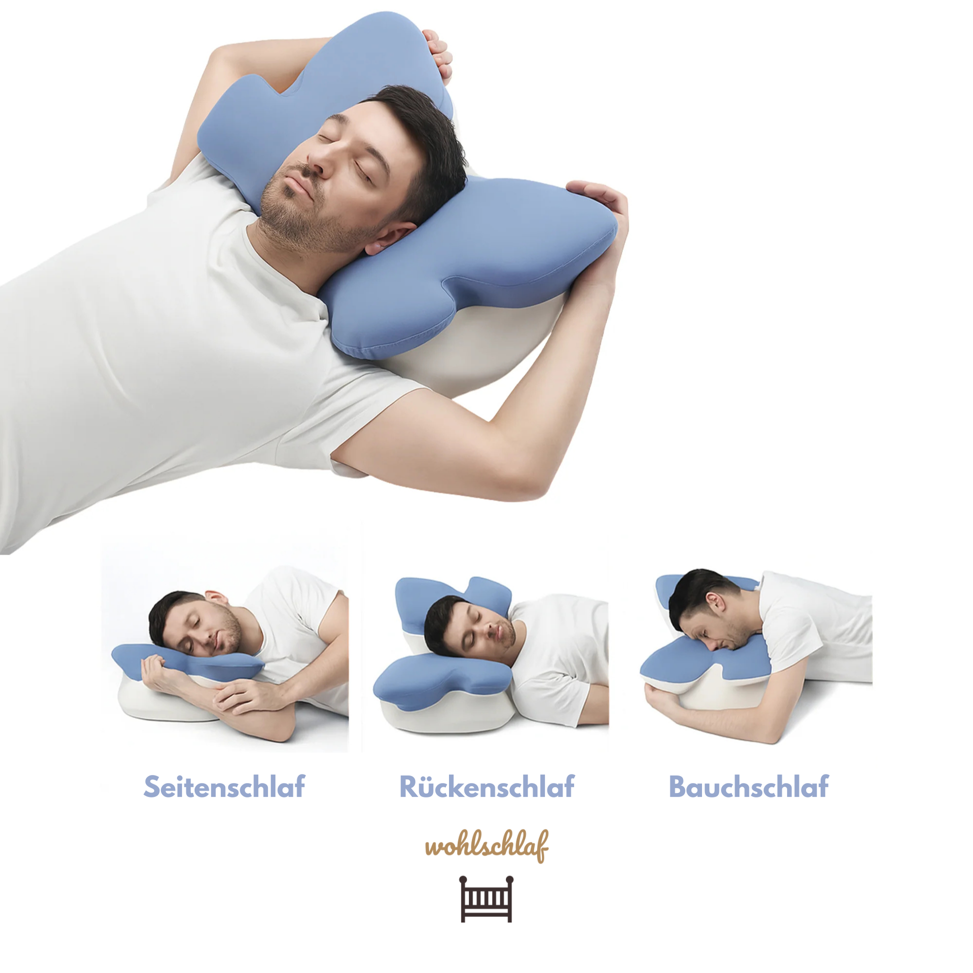 Die spezielle Form des Kissens ist so angepasst, dass es für Rücken-, Seiten- und Bauchschläfer gleichermaßen geeignet ist. Egal wie du schläfst – dein Kopf liegt immer bequem und stabil.