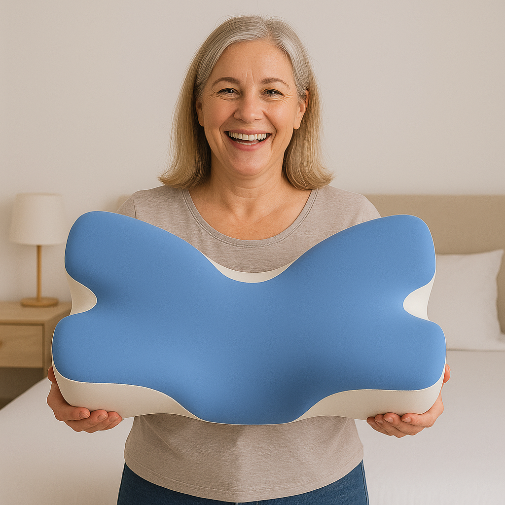 Unser spezielles Kissen wurde entwickelt, um Kopf und Nacken perfekt zu stützen. Durch die einzigartige Form bleibt deine Wirbelsäule gerade – für weniger Verspannungen und mehr Komfort.